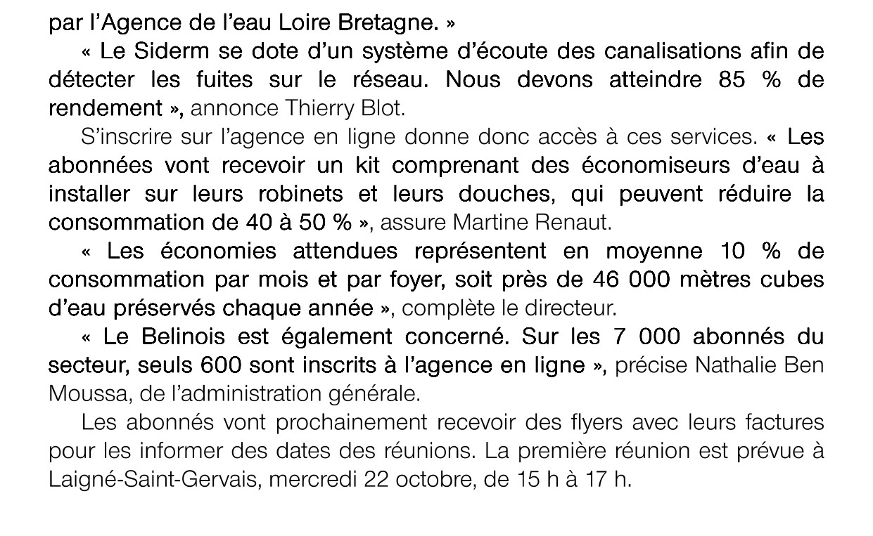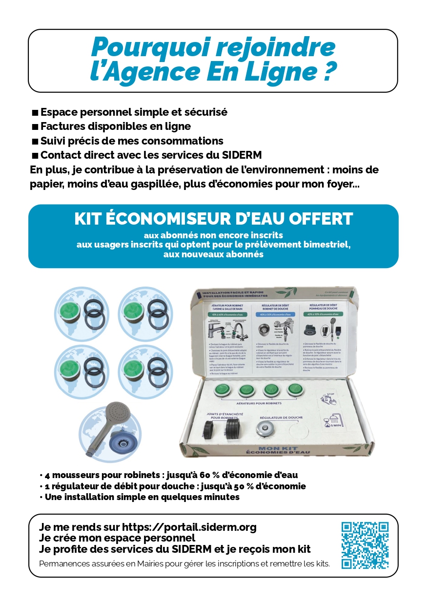 Le SIDERM poursuit la modernisation de sa gestion de l’eau potable et renforce ses actions en faveur d’une consommation responsable. Depuis l’automne 2025, une campagne est déployée dans les 23 communes de son territoire pour inciter les abonnés à s’inscrire sur l’Agence en ligne, le portail numérique dédié aux usagers. Une conférence de presse s'est tenue au SIDERM le 07 octobre dernier.